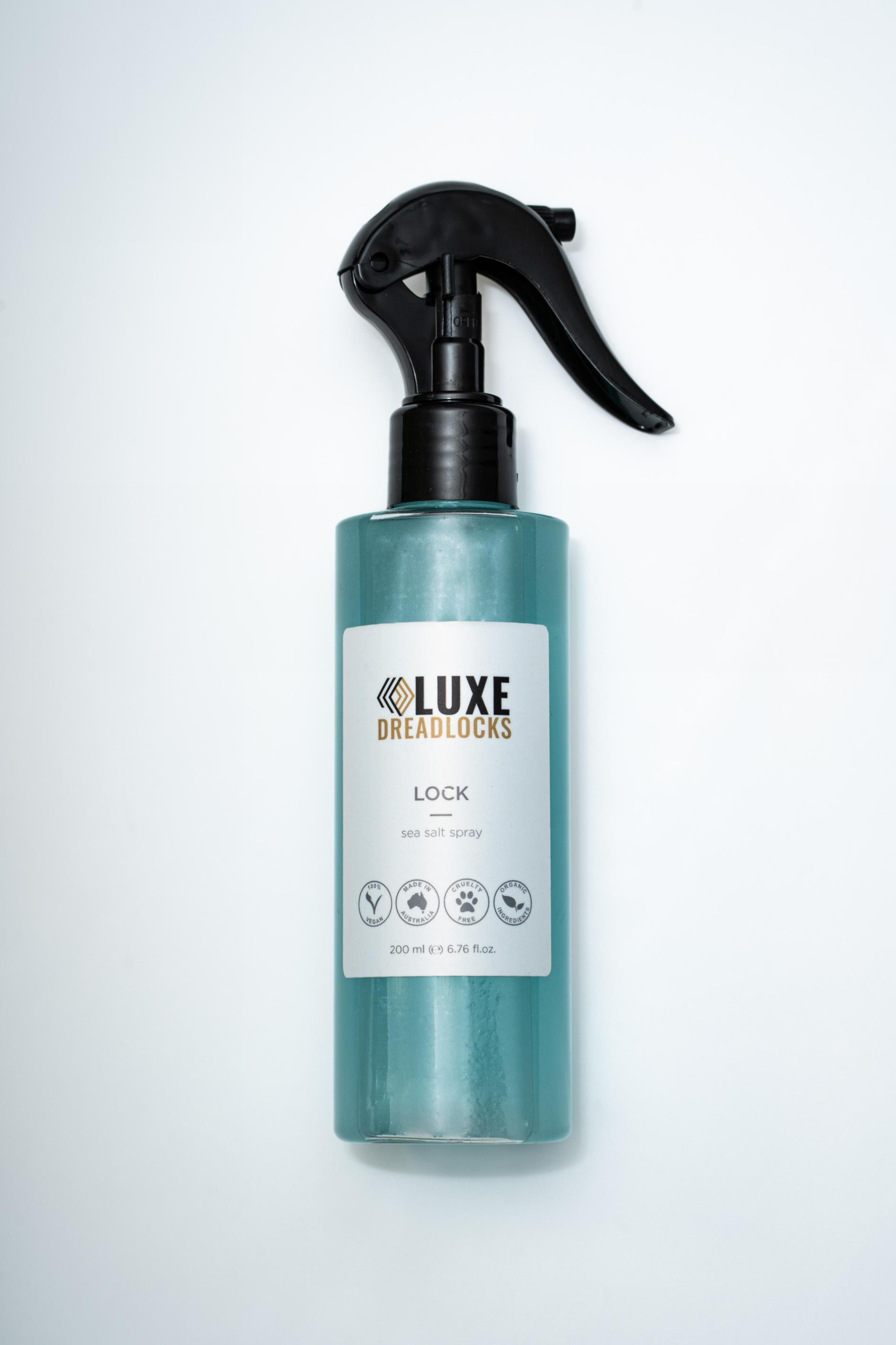 LOCK Our light hold sea salt spray provides texture, helping keep locs tight and reducing fly-aways between shampoos. All LUXE products are residue free, organic, vegan and cruelty free.