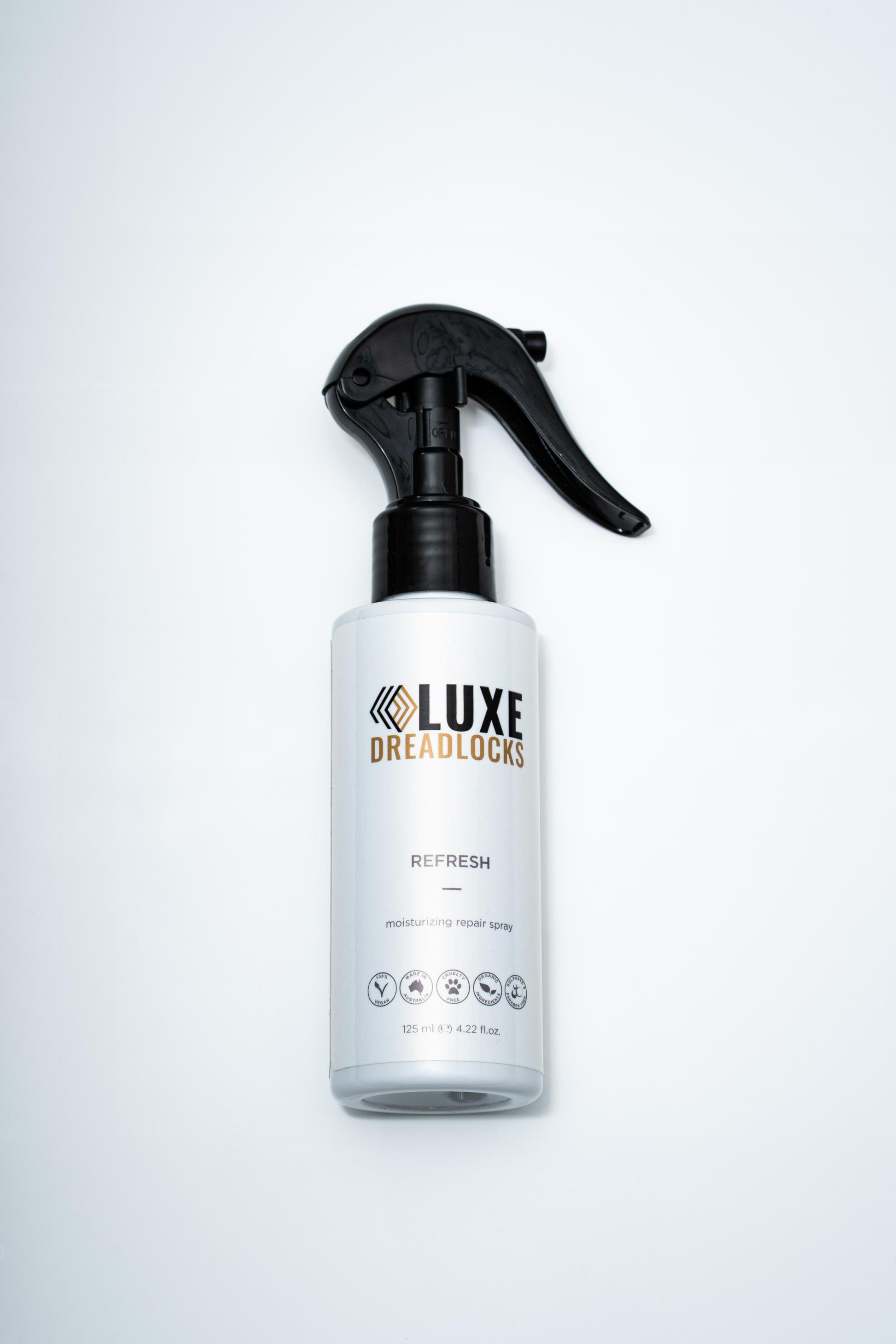 REFRESH Our moisturizing repair spray is light-weight and non-greasy. This anytime aid hydrates your scalp, enriches your hair and reduces breakage, all day long. All LUXE products are residue free, organic, vegan and cruelty free.